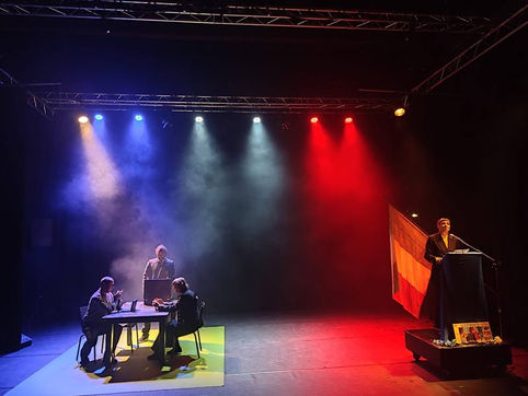L’Armée des Colombes – Variations sur la guerre et la paix est un spectacle en deux volets qui se répondent comme en miroir. D’un côté, la face sombre : un monde en conflit, dominé par la peur, la violence et le mépris des idéaux. De l’autre, la face lumineuse : un élan vers le dialogue, la transmission, la coopération, la beauté face au chaos. Entre ombre et lumière, un voyage sensible qui questionne avec humour mais gravité notre rapport intime à la violence, à la guerre, mais aussi notre besoin d’utopies, d’adelphité et notre désir de paix.